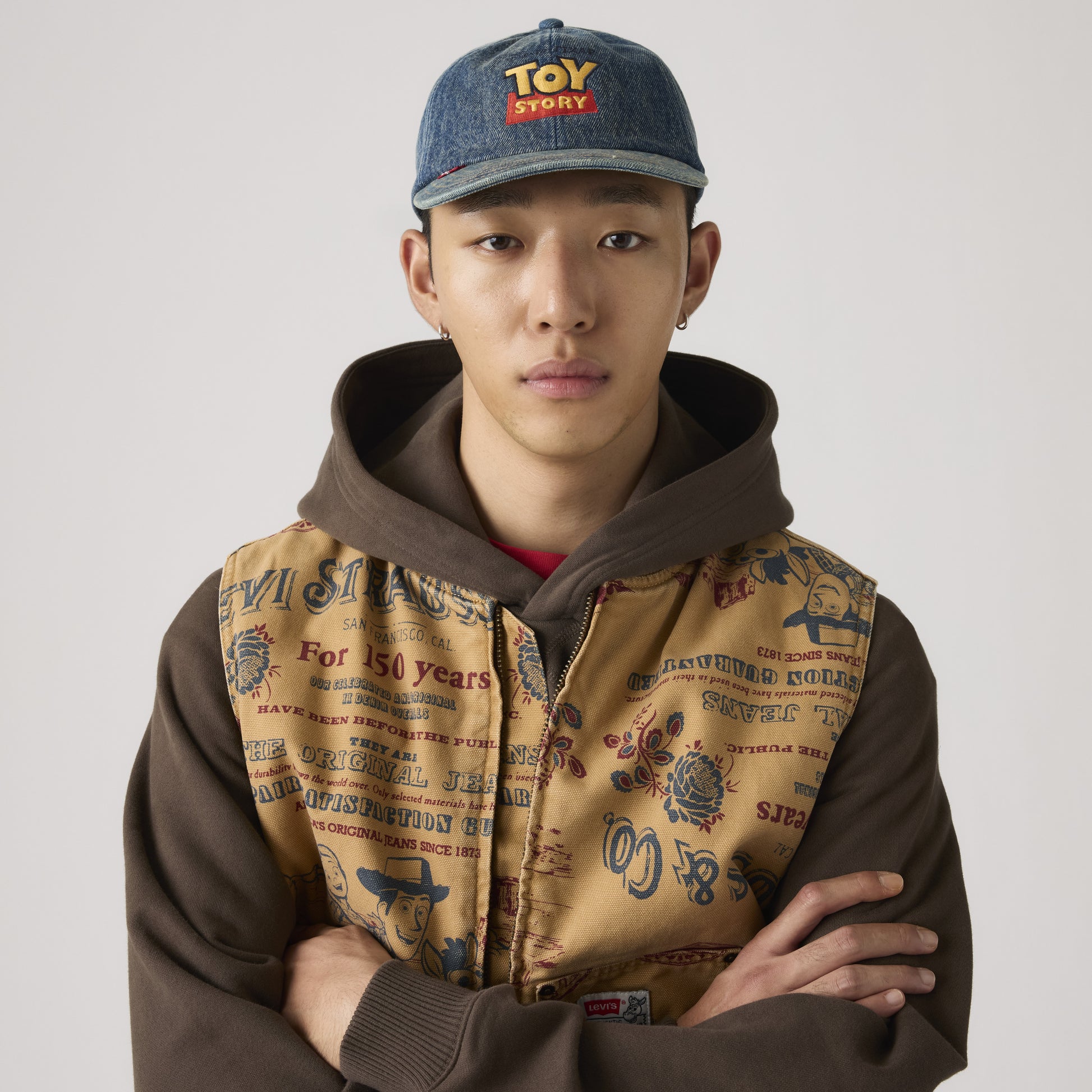 以牛仔布料打造,這款限量版標誌帽飾有「Toy Story」圖案設計,搭配浮雕皮克斯球扣與帽檐上的訂製西部縫線細節,展現獨特風格。